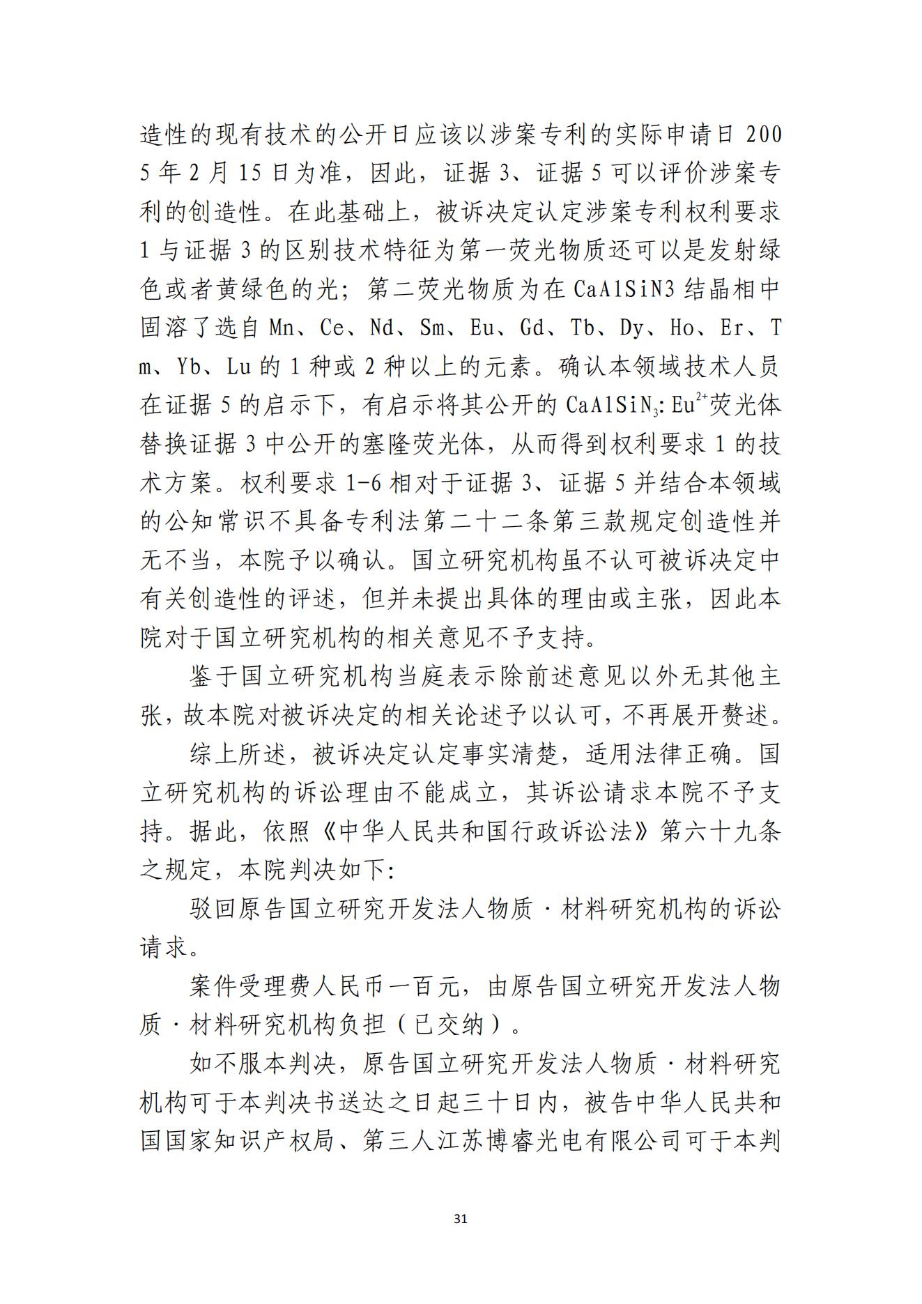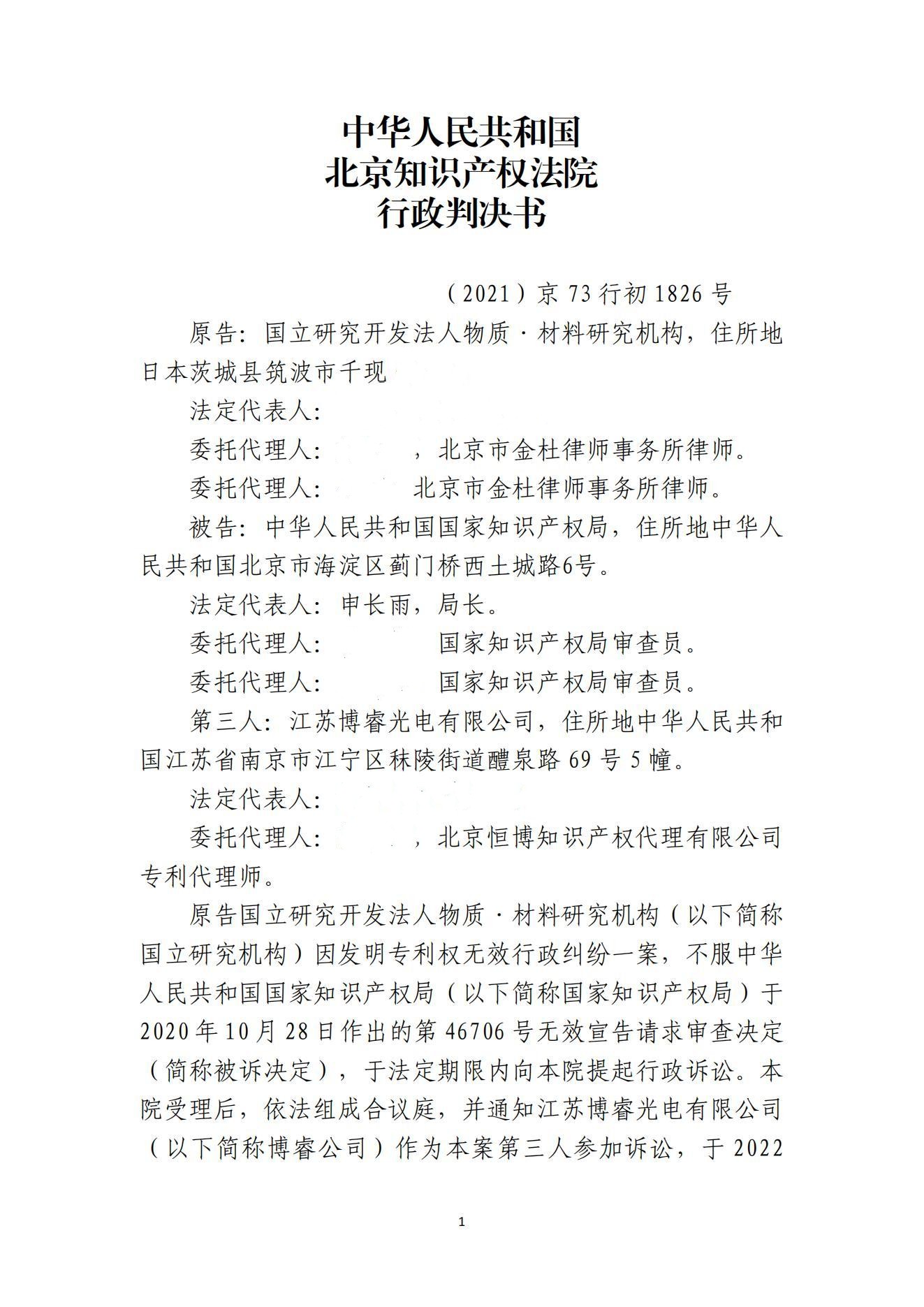 近日,中华人民共和国北京知识产权法院作出(2021)京73行初1826号行政判决书,判决驳回原告日本国立研究开发法人物质材料研究机构的诉讼请求。至此,“发光元件和照明器具”专利权无效行政纠纷即告一段落。